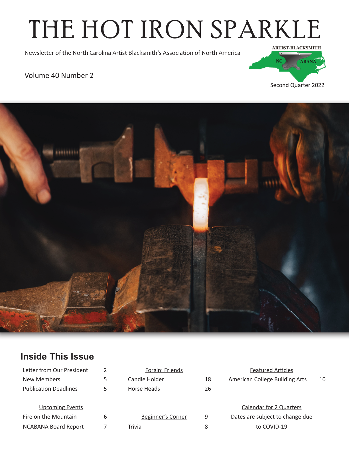 This is the quarterly publication for NCABANA! In this newsletter, you can read about all the latest events, how-to articles on interesting forgings or tool-making, and all the goings on in the blacksmithing community.